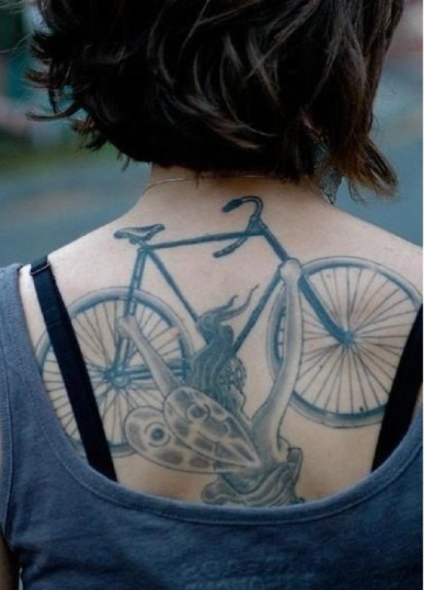 高举自行车的精灵纹身_小清新纹身图案大全_纹身图吧