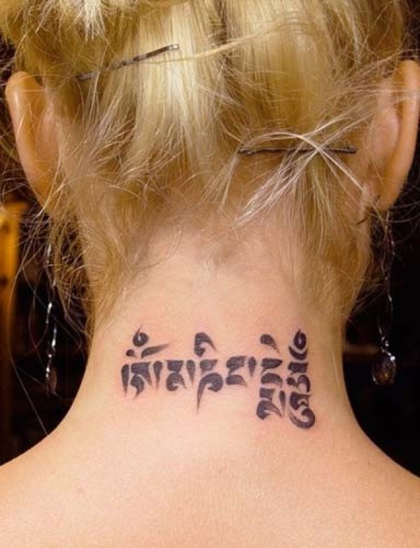 脖子上一款小清新梵文纹身_小清新纹身图案大全_纹身图吧