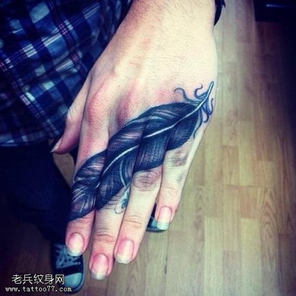手被一根唯美充满个性的羽毛纹身图片_小清新纹身图案大全_纹身图吧