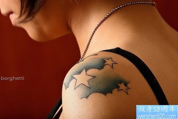小清新肩部云五角星纹身图案_小清新纹身图案大全_纹身图吧