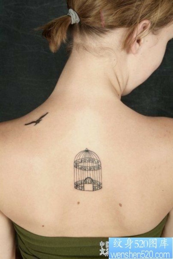 小清新背部鸟笼纹身图案_小清新纹身图案大全_纹身图吧