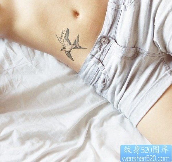 小清新腰部燕子纹身图案_小清新纹身图案大全_纹身图吧