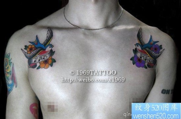 小清新胸部燕子纹身图案_小清新纹身图案大全_纹身图吧