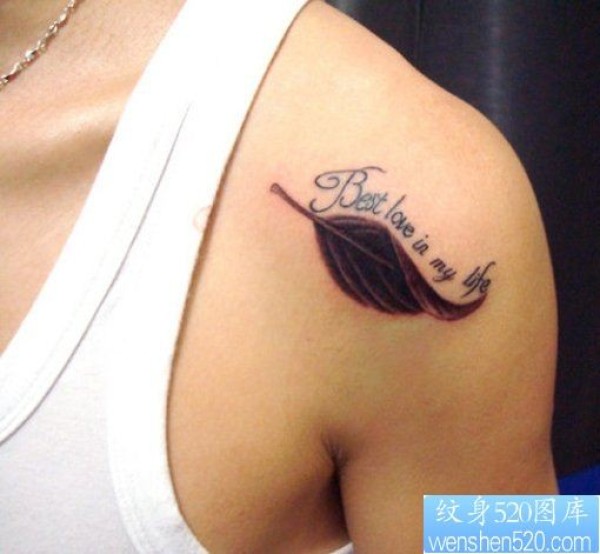 小清新肩部树叶纹身图案_小清新纹身图案大全_纹身图吧