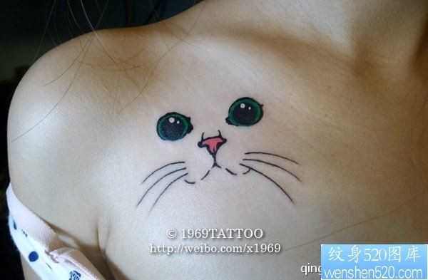 小清新胸部小猫纹身图案_小清新纹身图案大全_纹身图吧