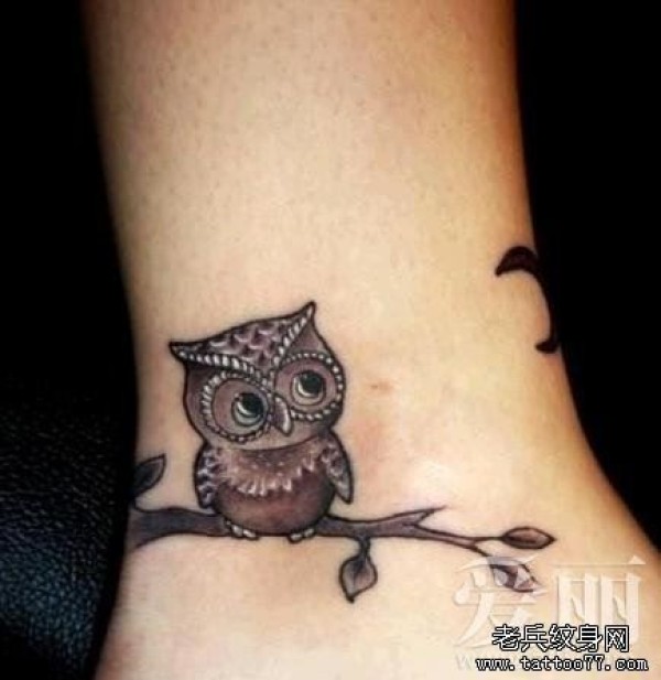 小清新脚部个性猫头鹰纹身图案_小清新纹身图案大全_纹身图吧