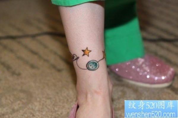 小清新腿部个性五角星纹身图案_小清新纹身图案大全_纹身图吧