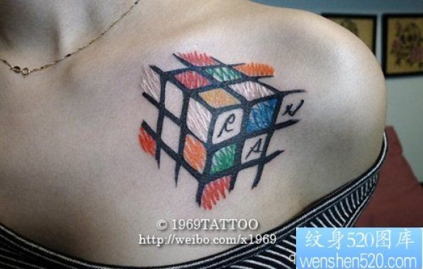 小清新胸部个性魔方纹身图案_小清新纹身图案大全_纹身图吧