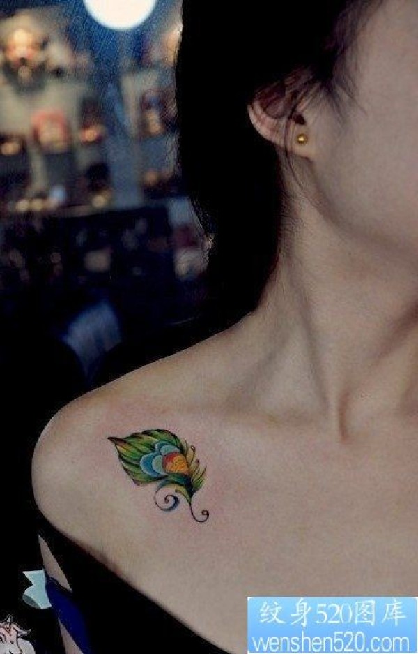 胸部好看的孔雀羽毛纹身_小清新纹身图案大全_纹身图吧