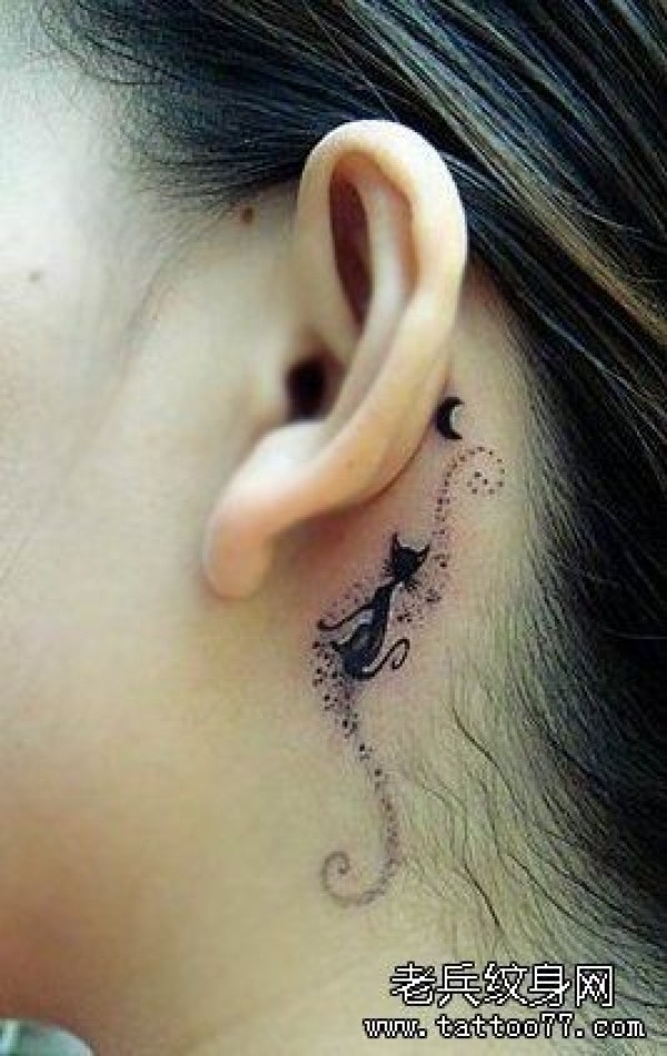 小清新耳部猫月亮纹身图案_小清新纹身图案大全_纹身图吧