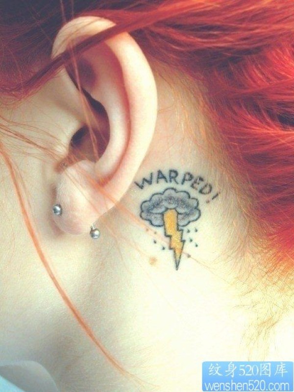 小清新耳部乌云闪电纹身图案_小清新纹身图案大全_纹身图吧