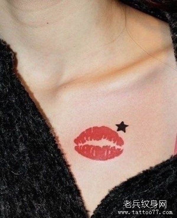 小清新胸部红唇纹身图案_小清新纹身图案大全_纹身图吧
