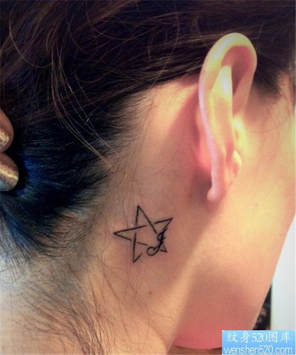 耳后小清新五角星纹身图案_小清新纹身图案大全_纹身图吧