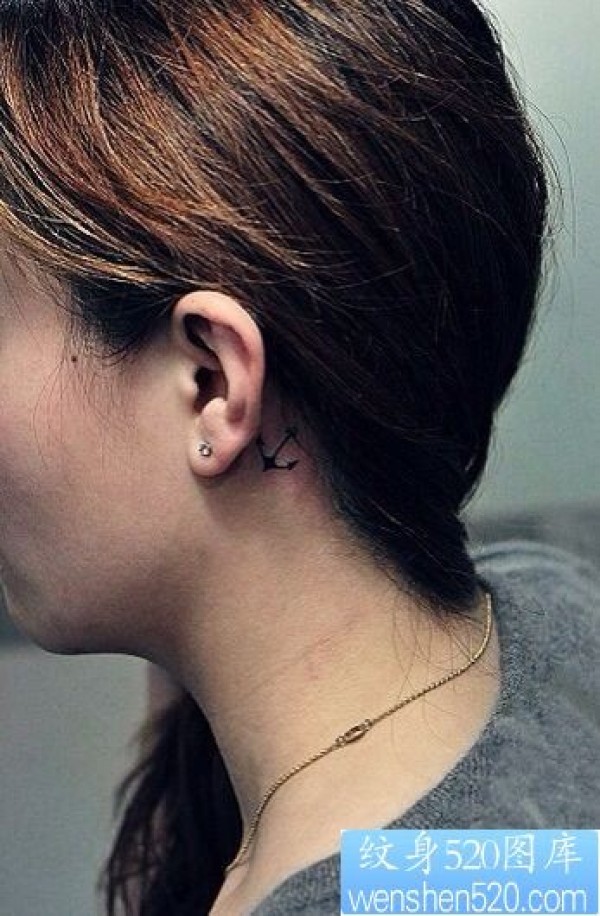 耳后小清新船锚纹身图片_小清新纹身图案大全_纹身图吧