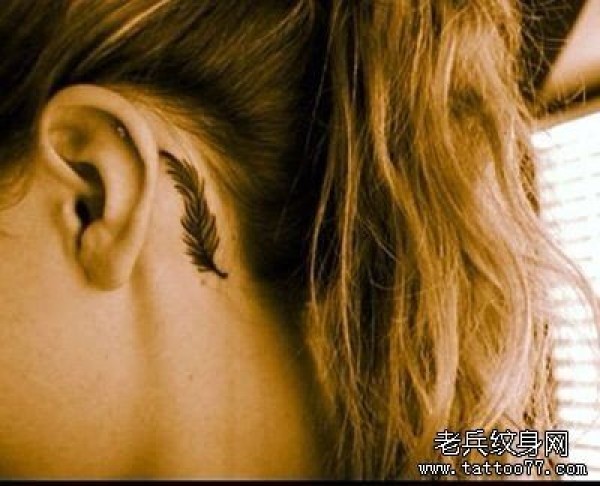 纹身520图库推荐一幅耳后羽毛纹身图片_小清新纹身图案大全_纹身图吧