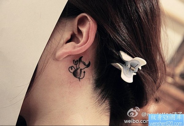 一幅小清新耳后纹身图片由纹身520图库推荐_小清新纹身图案大全_纹身图吧