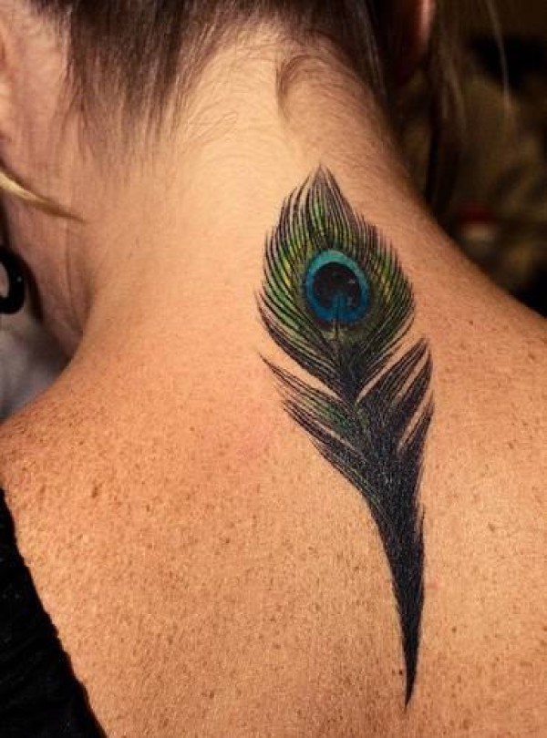 背部漂亮的孔雀羽毛纹身_小清新纹身图案大全_纹身图吧