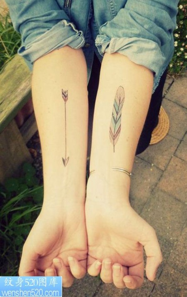 手臂内侧羽毛和箭纹身图案_小清新纹身图案大全_纹身图吧
