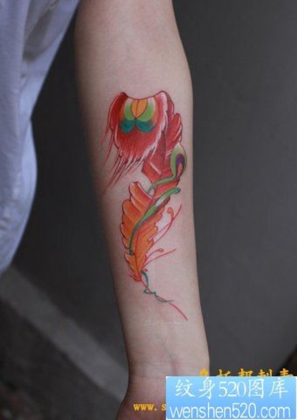 手部红色羽毛纹身图片_小清新纹身图案大全_纹身图吧
