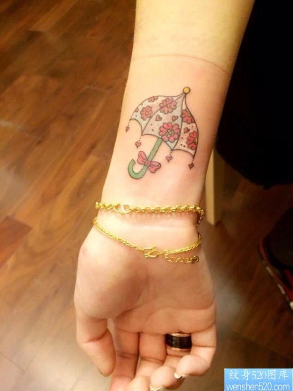 纹身520图库推荐一幅手腕小清新小雨伞文身图片_小清新纹身图案大全_纹身图吧