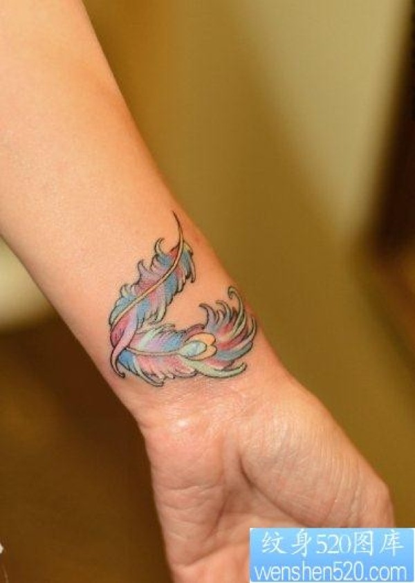 纹身520图库推荐一幅手臂羽毛文身图片_小清新纹身图案大全_纹身图吧