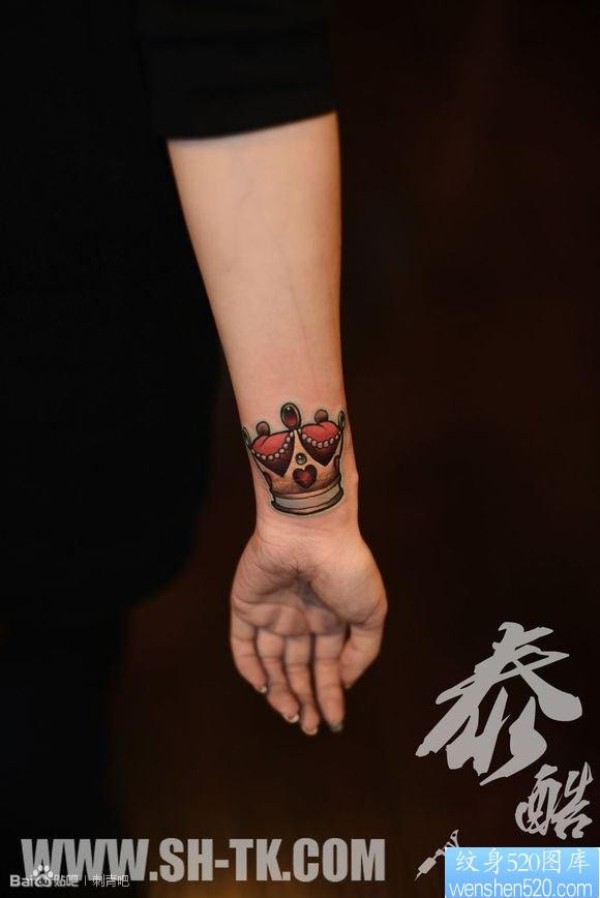女人手部小清新彩色皇冠纹身图片_小清新纹身图案大全_纹身图吧