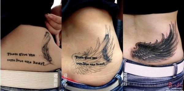 腰部羽毛纹身遮盖过程图不要为不漂亮了的纹身_小清新纹身图案大全_纹身图吧