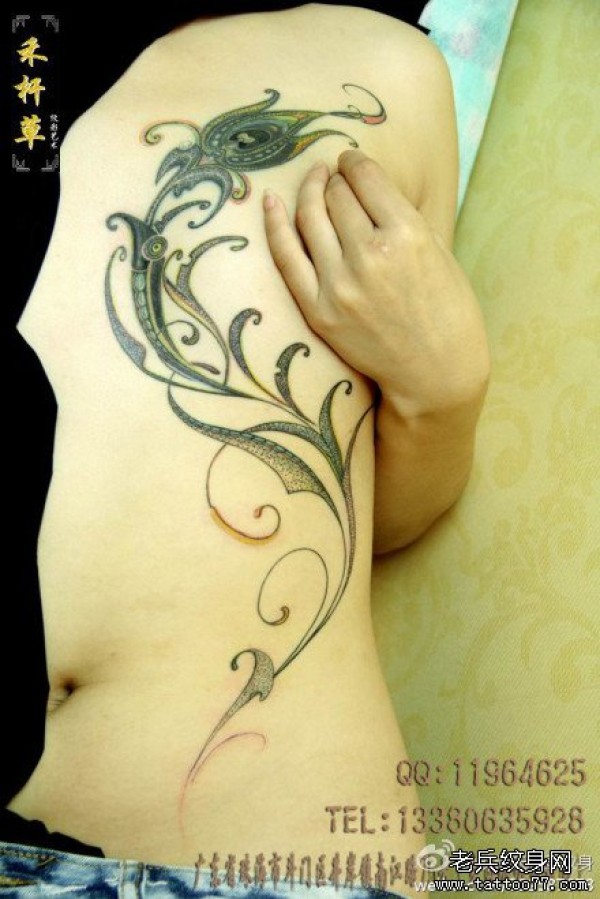 性感诱人的美女胸部到腰部羽毛藤蔓纹身图案_小清新纹身图案大全_纹身图吧