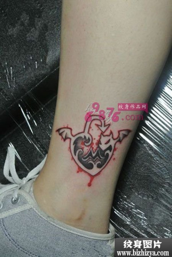 小清新恶魔心锁脚踝纹身图案图片_小清新纹身图案大全_纹身图吧