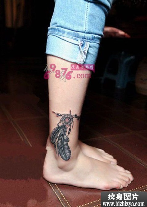 印第安羽毛创意脚踝纹身图案图片_小清新纹身图案大全_纹身图吧