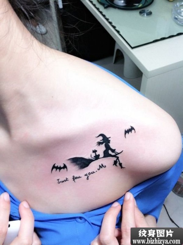胸前锁骨女巫小清新纹身图案图片_小清新纹身图案大全_纹身图吧