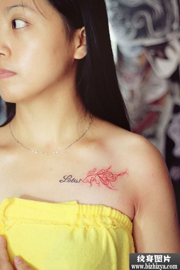 清新英文线条金鱼锁骨纹身图案图片_小清新纹身图案大全_纹身图吧