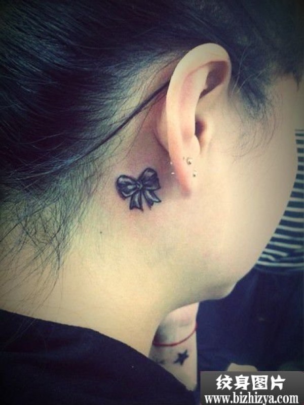 小清新耳后蝴蝶结纹身图案图片_小清新纹身图案大全_纹身图吧