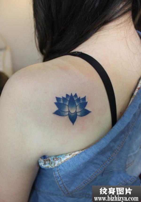 肩部清新蓝色小莲花纹身图案图片_小清新纹身图案大全_纹身图吧