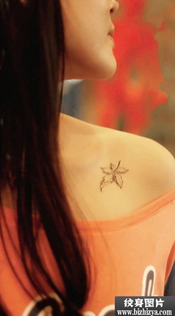 肩部小清新树叶纹身图案图片_小清新纹身图案大全_纹身图吧