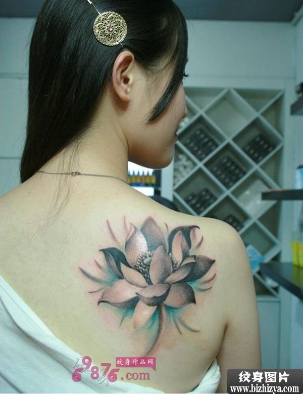 美女小清新莲花肩部纹身图案图片_小清新纹身图案大全_纹身图吧