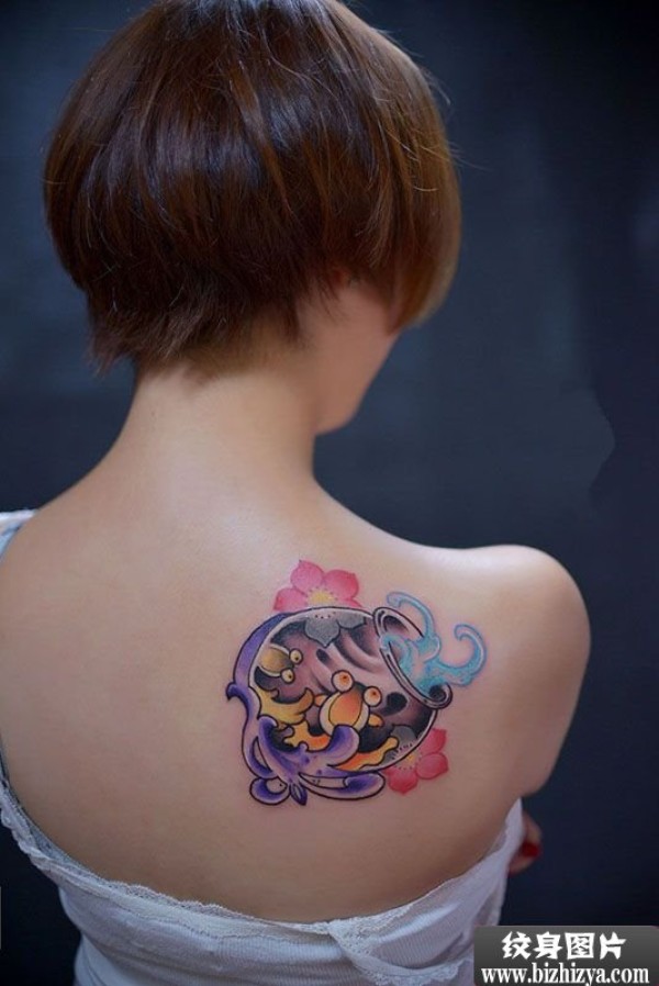 小清新金鱼缸肩部纹身图案图片_小清新纹身图案大全_纹身图吧
