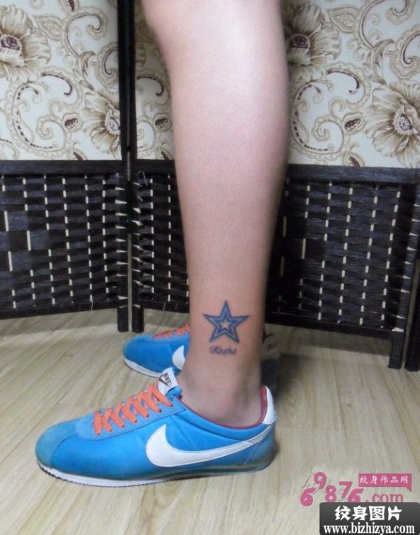 蓝色星星脚踝清新纹身图案图片_小清新纹身图案大全_纹身图吧