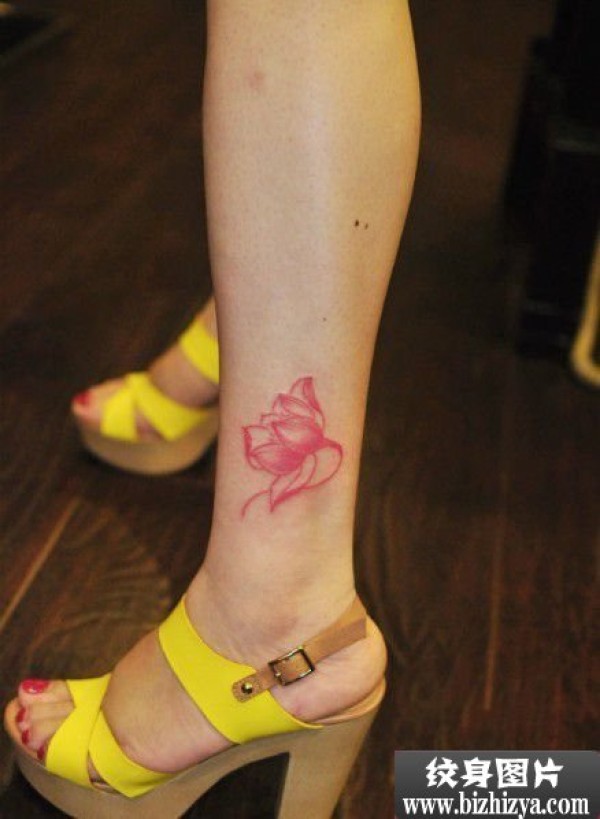 脚踝红色小莲花清新纹身图案图片_小清新纹身图案大全_纹身图吧