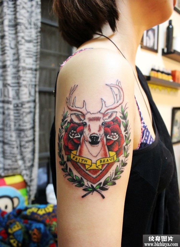 清新彩色驯鹿手臂纹身图案图片_小清新纹身图案大全_纹身图吧