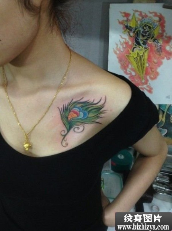 胸部好看的孔雀羽毛纹身_小清新纹身图案大全_纹身图吧