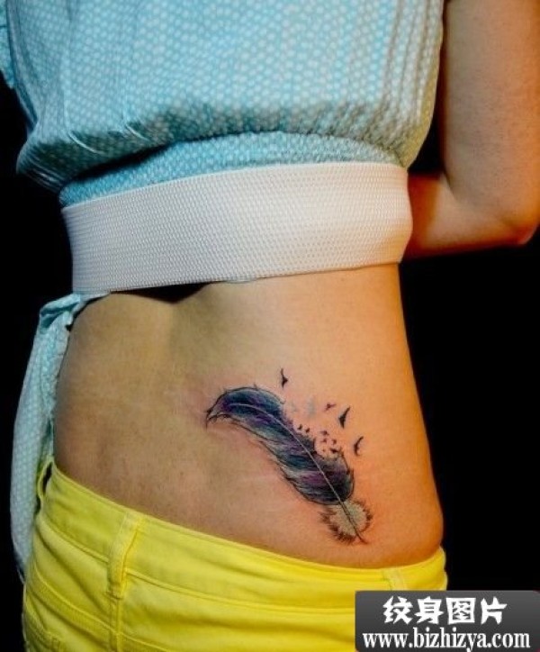 侧腰羽毛刺青图案图片_小清新纹身图案大全_纹身图吧
