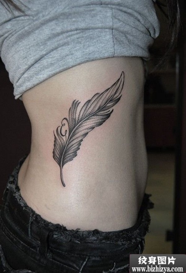 性感腰部雕塑羽毛纹身图案图片_小清新纹身图案大全_纹身图吧