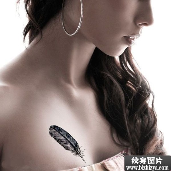 美女胸部羽毛纹身图图案图片_小清新纹身图案大全_纹身图吧