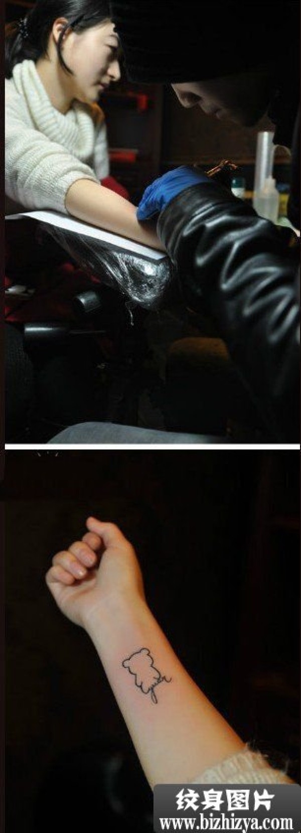 手臂小清新熊熊文字个纹身过程图案图片_小清新纹身图案大全_纹身图吧