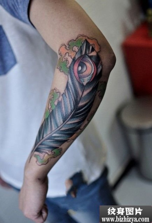 另类个性羽毛创意刺青图案图片_小清新纹身图案大全_纹身图吧