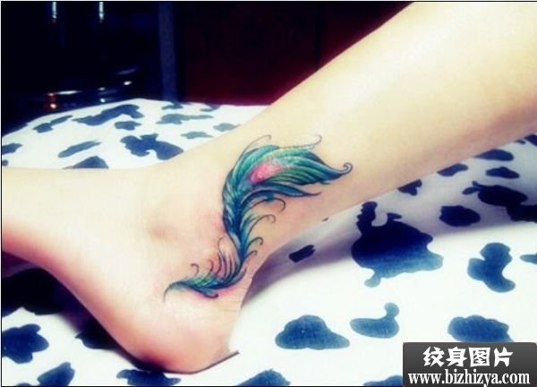 脚踝孔雀羽毛纹身图案图片_小清新纹身图案大全_纹身图吧