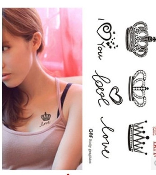 侧胸彩色皇冠与爱心纹身_小清新纹身图案大全_纹身图吧