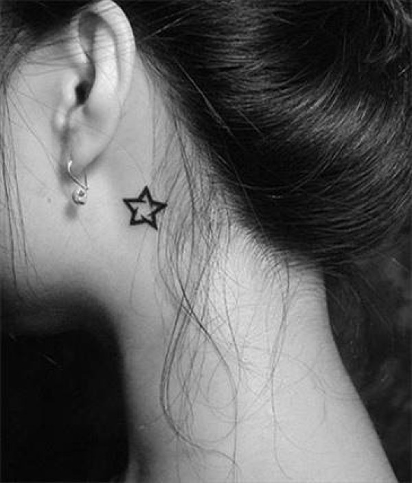 推荐一款时尚小清新个性的耳后五角星纹身图案_小清新纹身图案大全_纹身图吧
