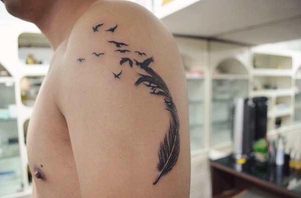 男人大臂一款时尚经典的羽毛纹身图案_小清新纹身图案大全_纹身图吧